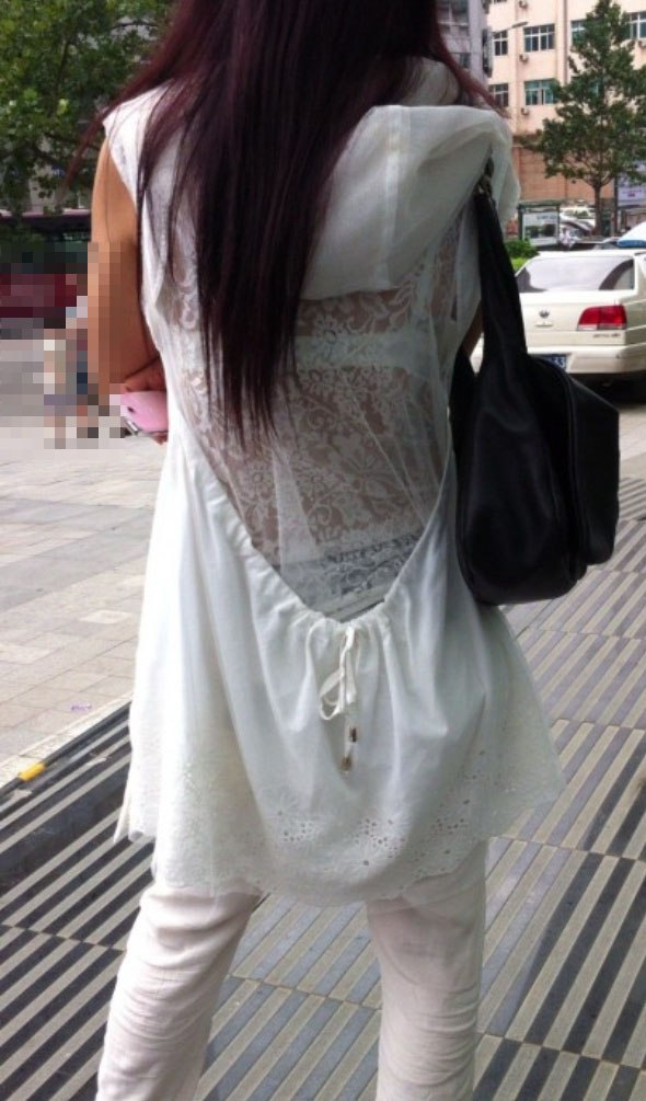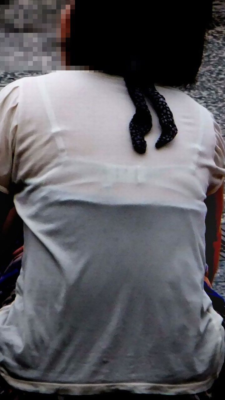 薄い生地でブラジャーが透けて見えちゃってる街にいたお姉さんたちwww